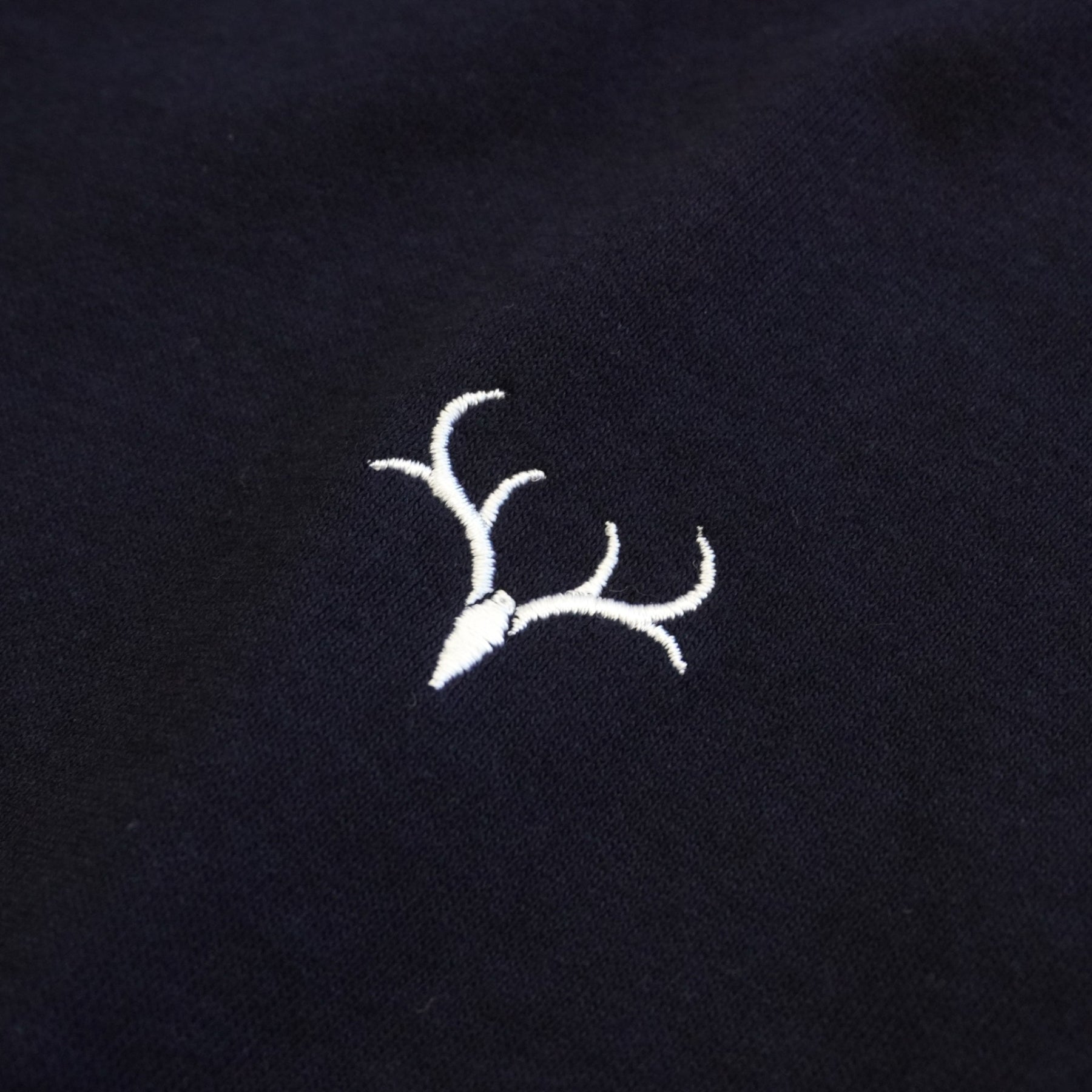 左胸にエンブレムの刺繡が施されたシンプルなTシャツです。