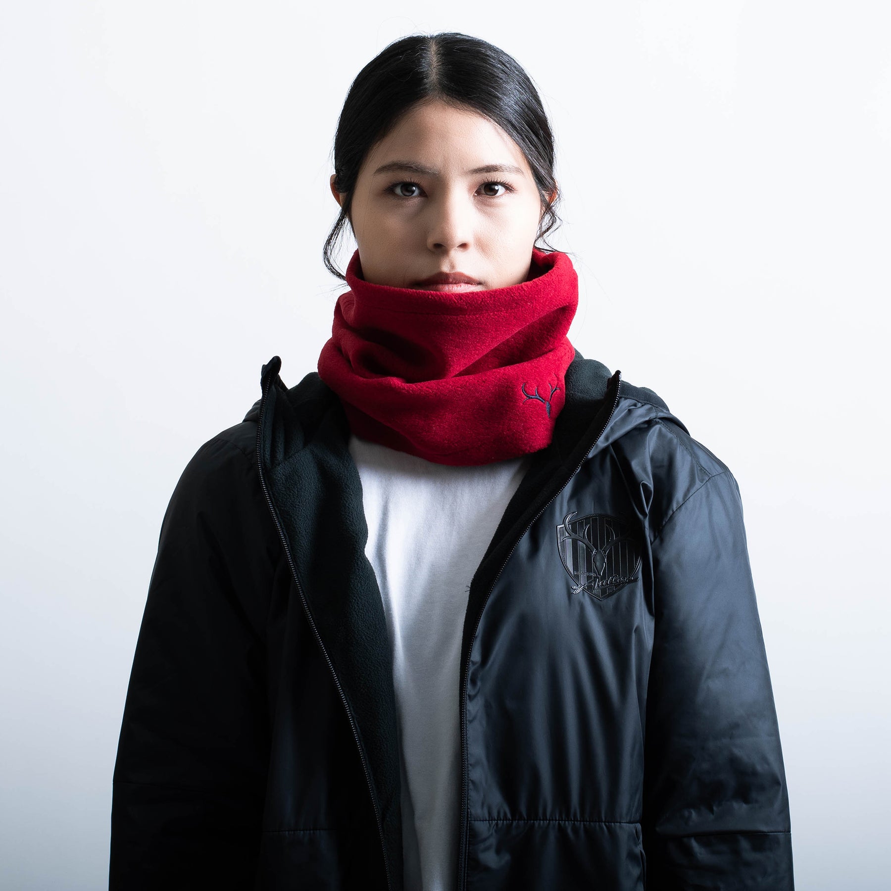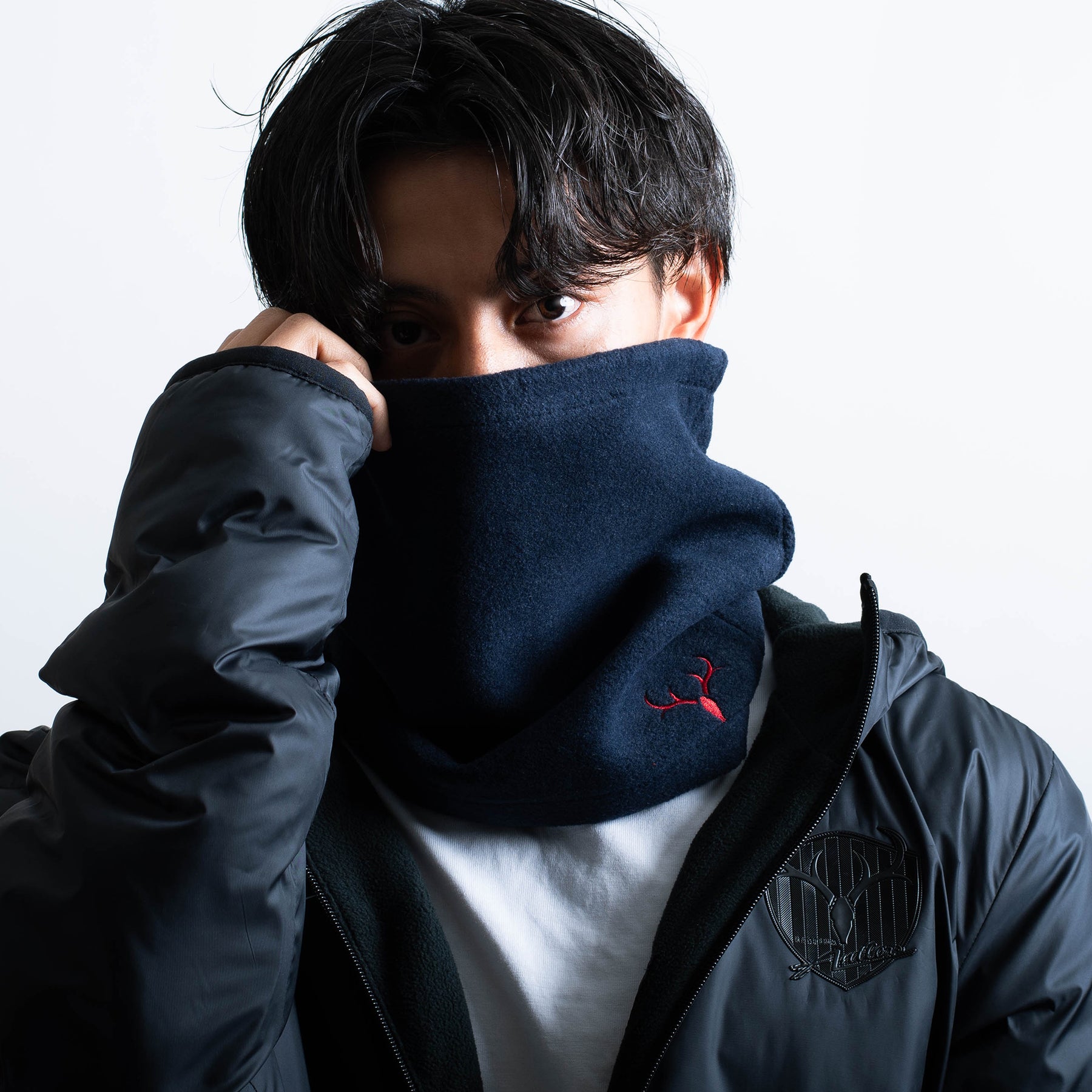 寒い時期に大活躍のネックウォーマーが登場!エンブレム刺繍の日常使いしやすいシンプルなデザインです。ドローコードで首元のサイズ調節が可能です。