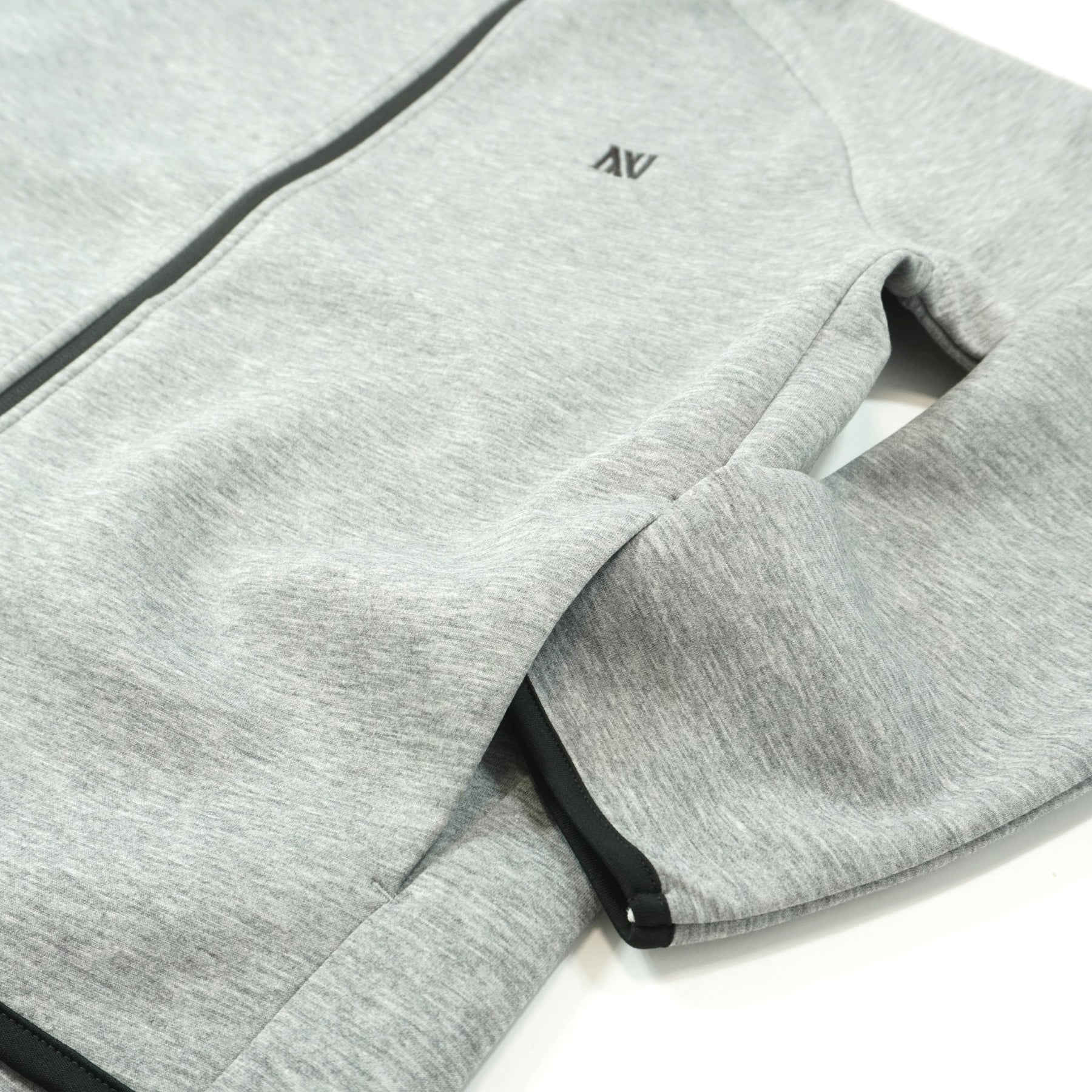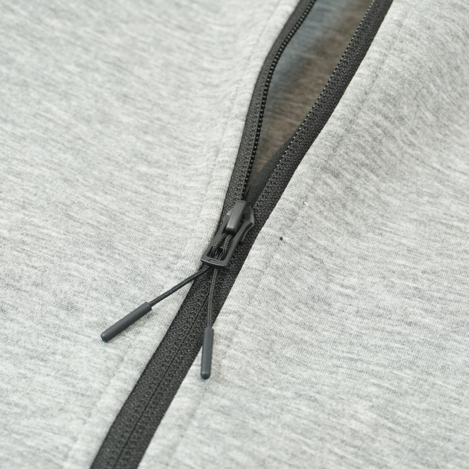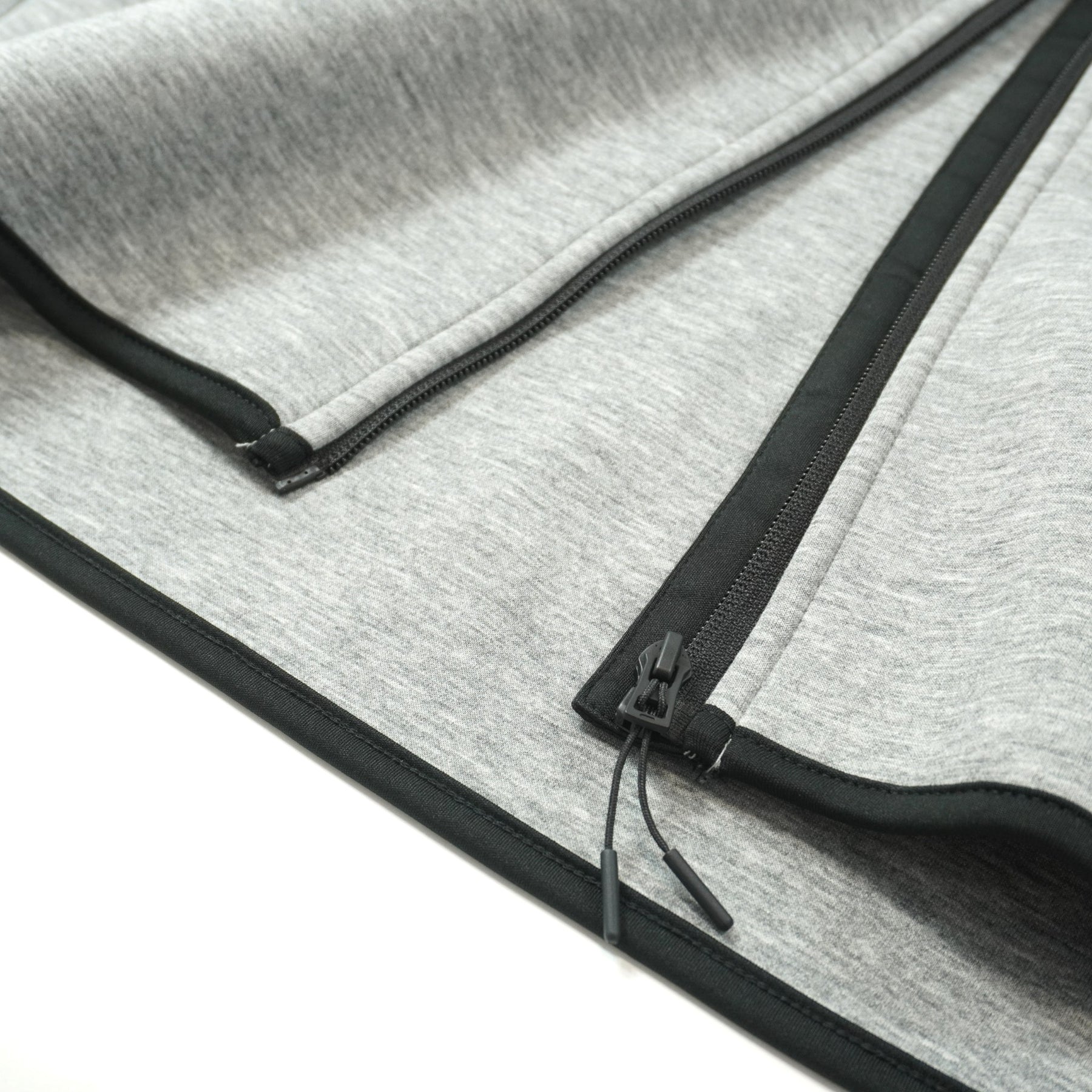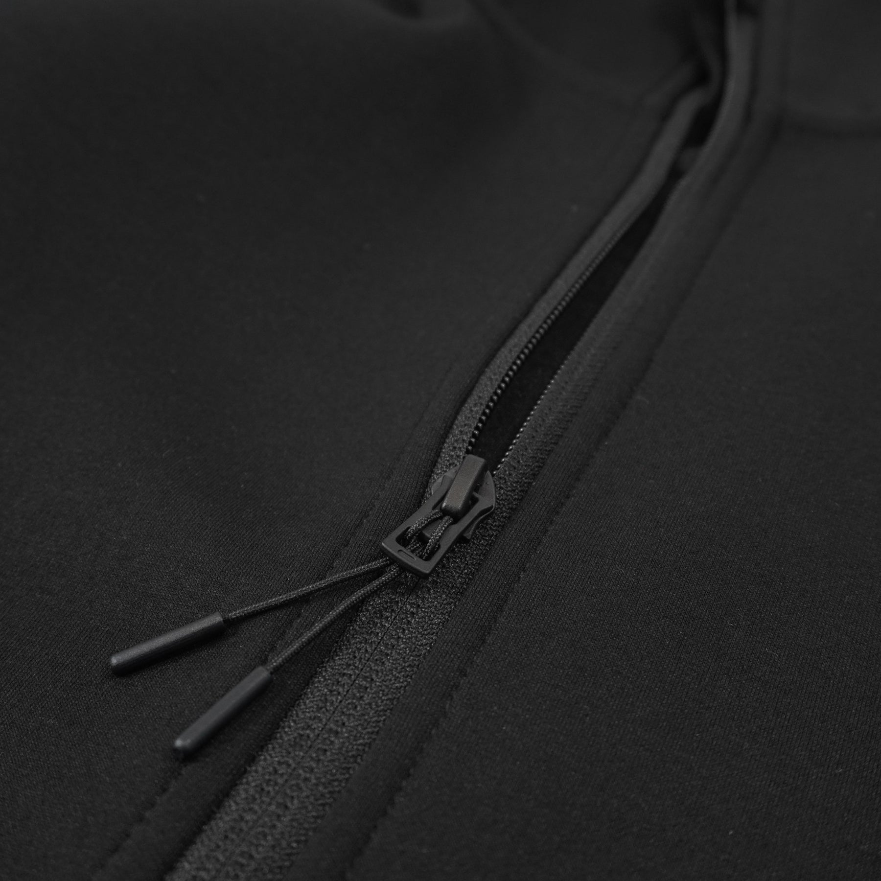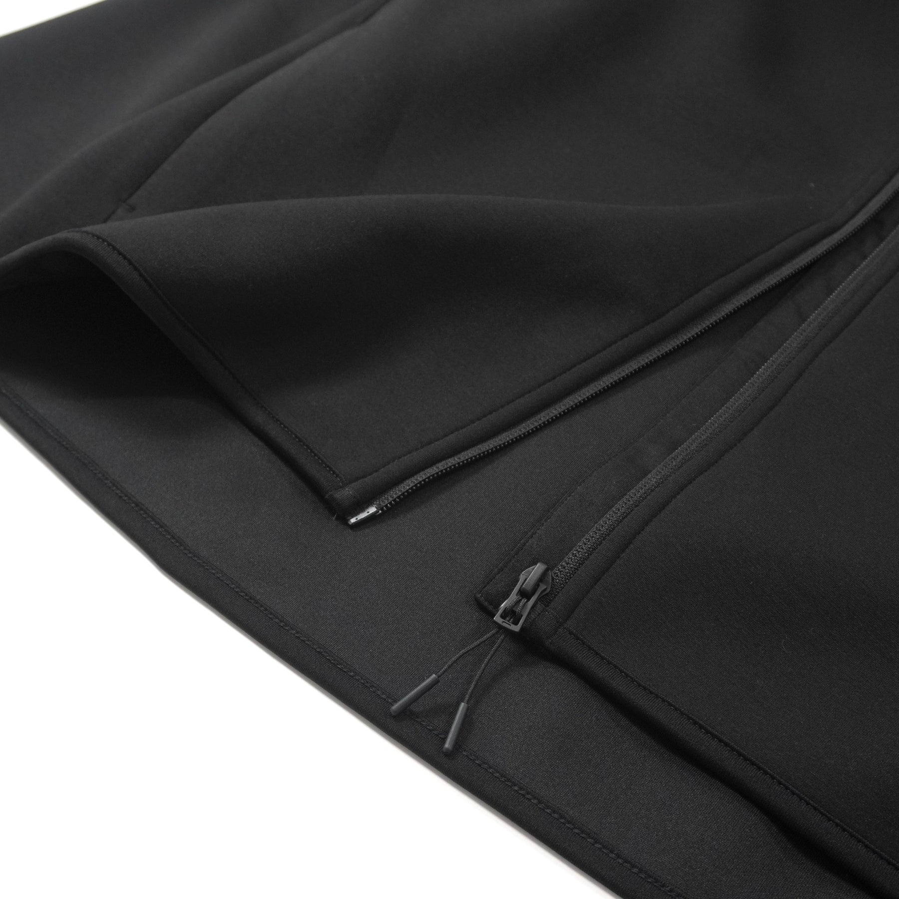 フロントのジップラインは装飾ではなく構造の一部として設計され、無駄のないシルエットを生み出す。