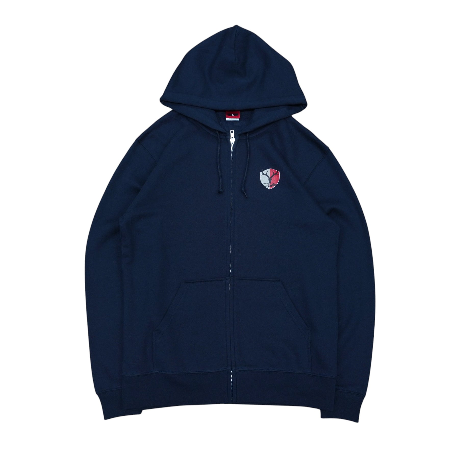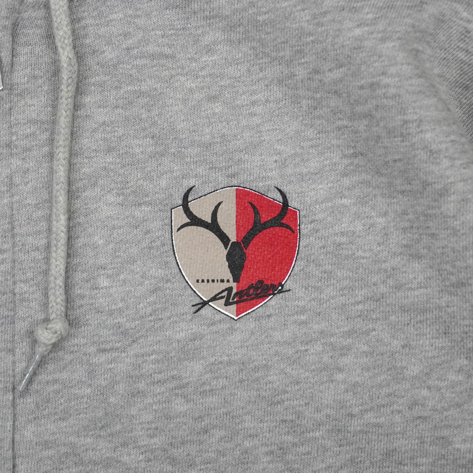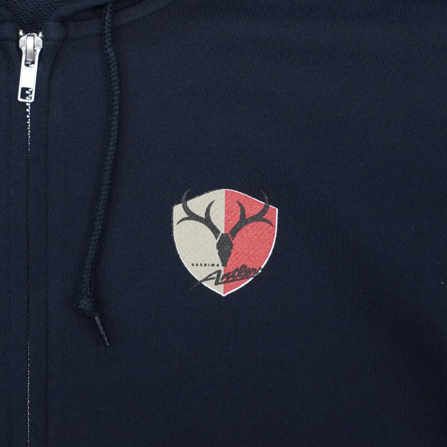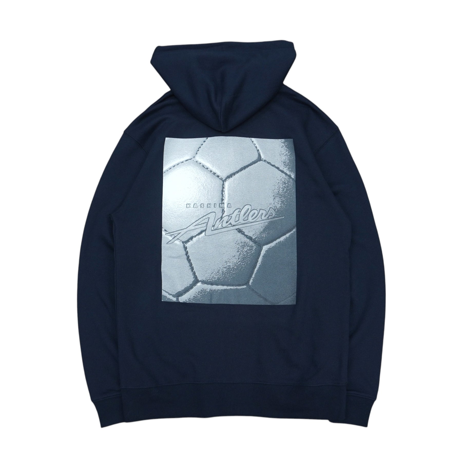 サッカーボールのバッグプリントが印象的なジップフーディです。