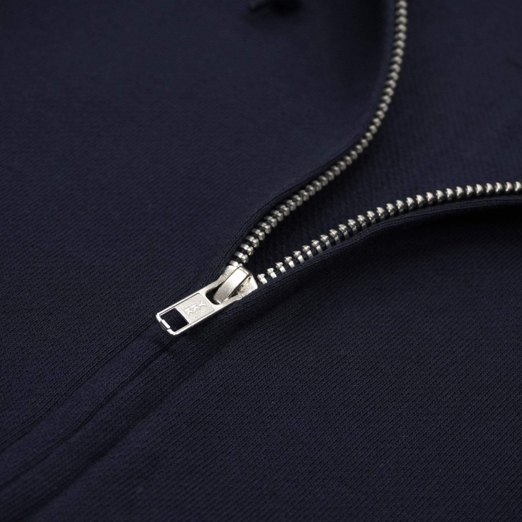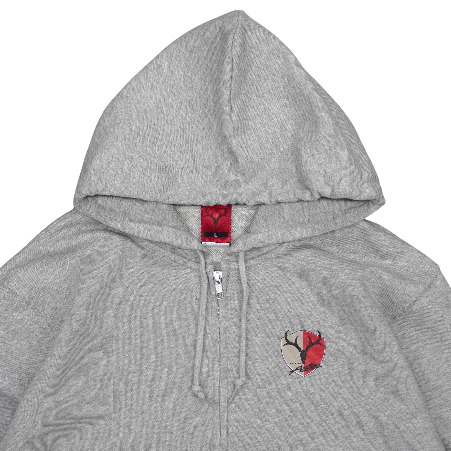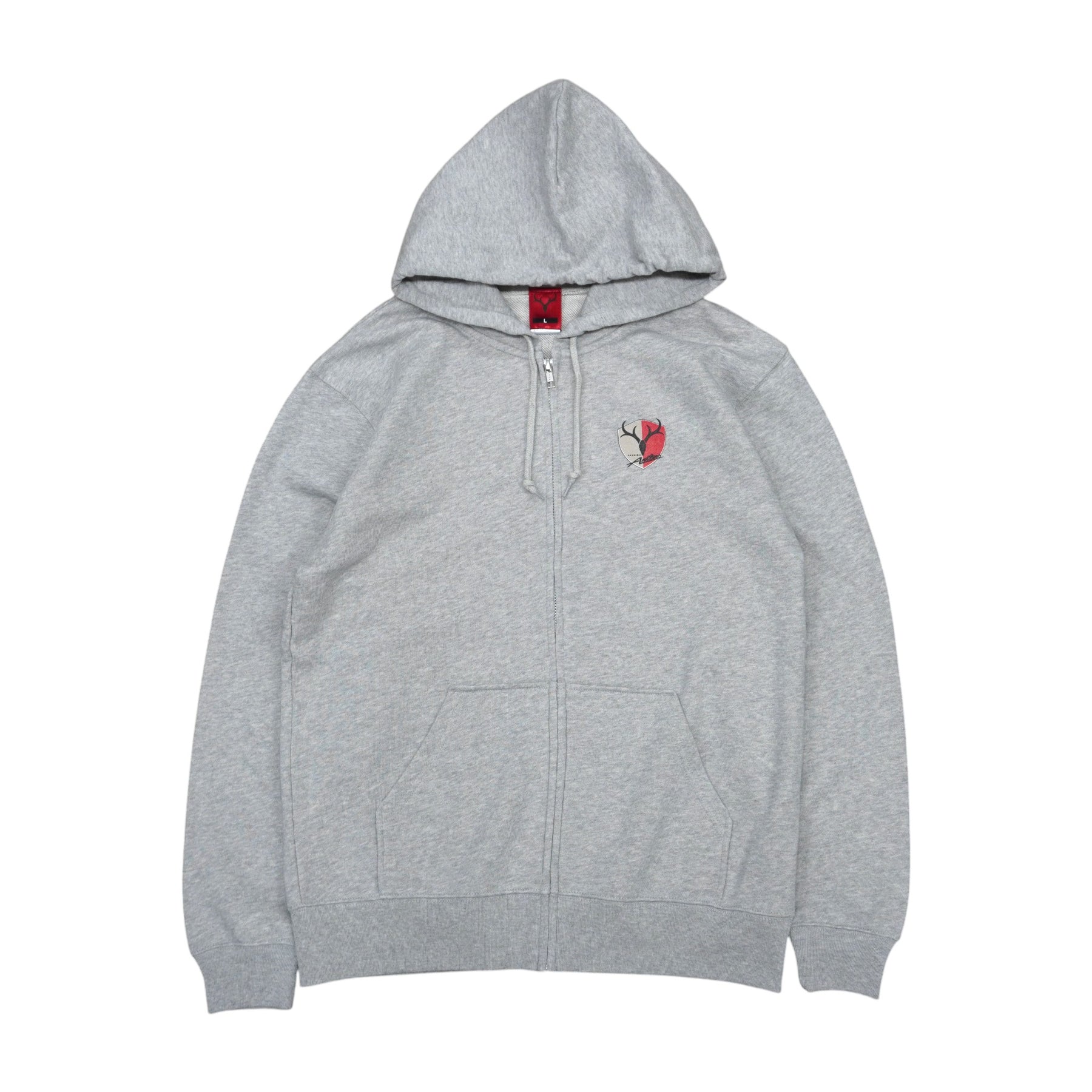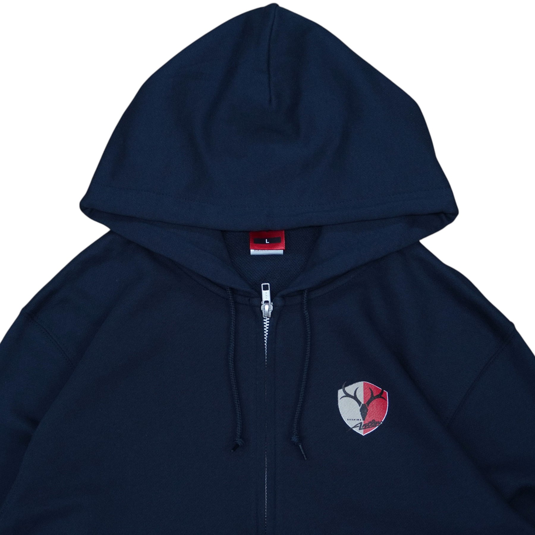 サッカーボールのバッグプリントが印象的なジップフーディです。