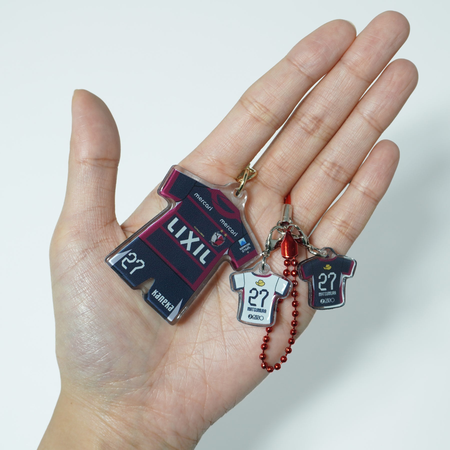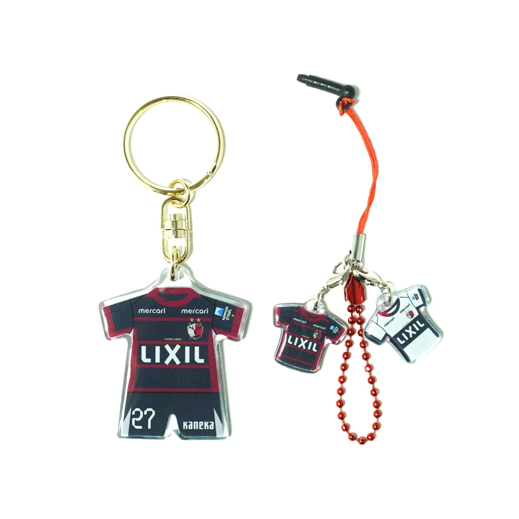 ユニフォーム型キーホルダーとストラップセットです。