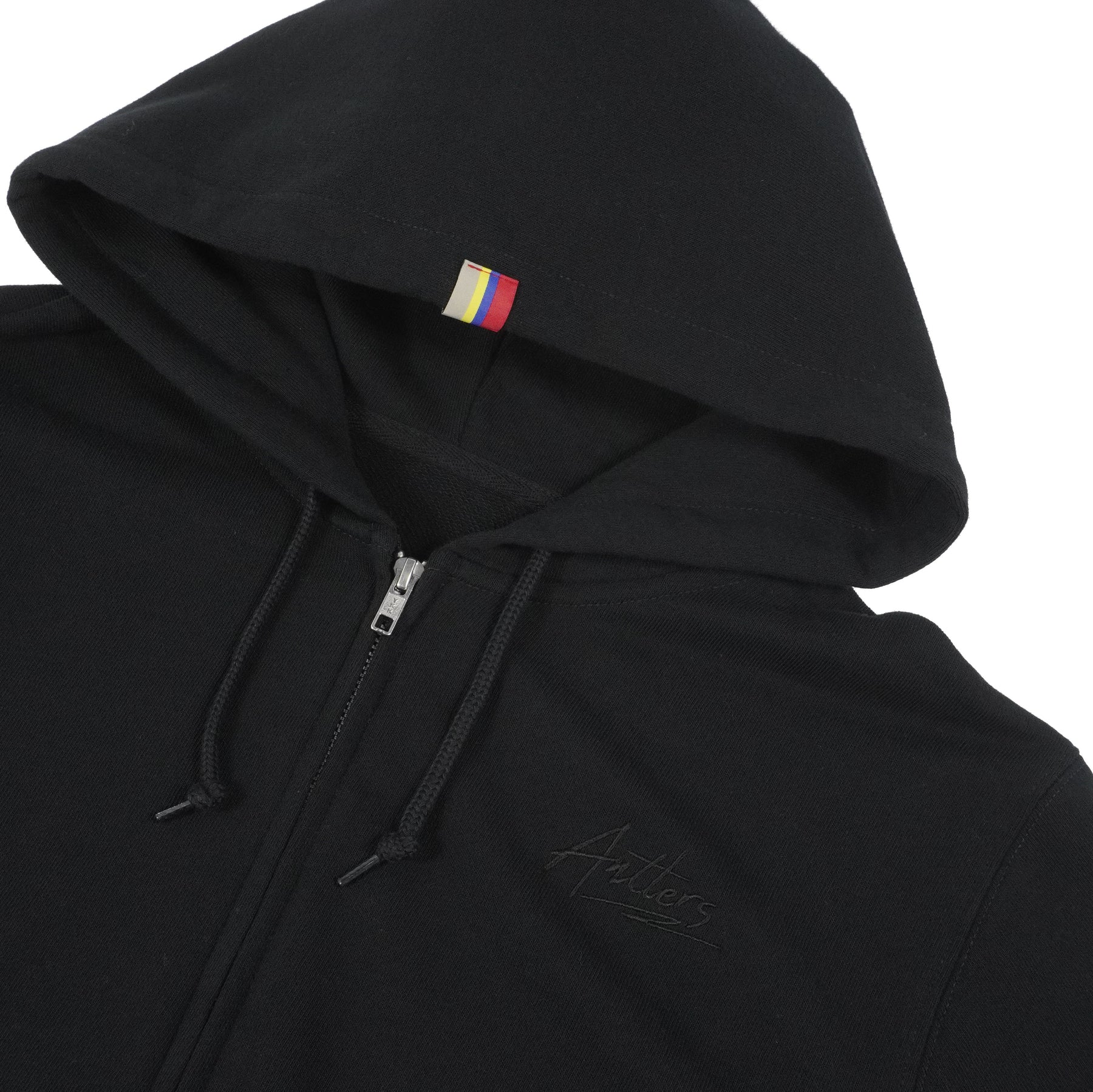 着脱が簡単で温度調節がしやすいフルジップパーカー。左胸にはスクリプトデザインのアントラーズロゴ。フード部分にはLフラッグベーシックカラーのピスネームを配置し、日常に溶け込むデザインに仕上げました。オフの日も心はアントラーズ。通年活躍する万能アイテムです。
