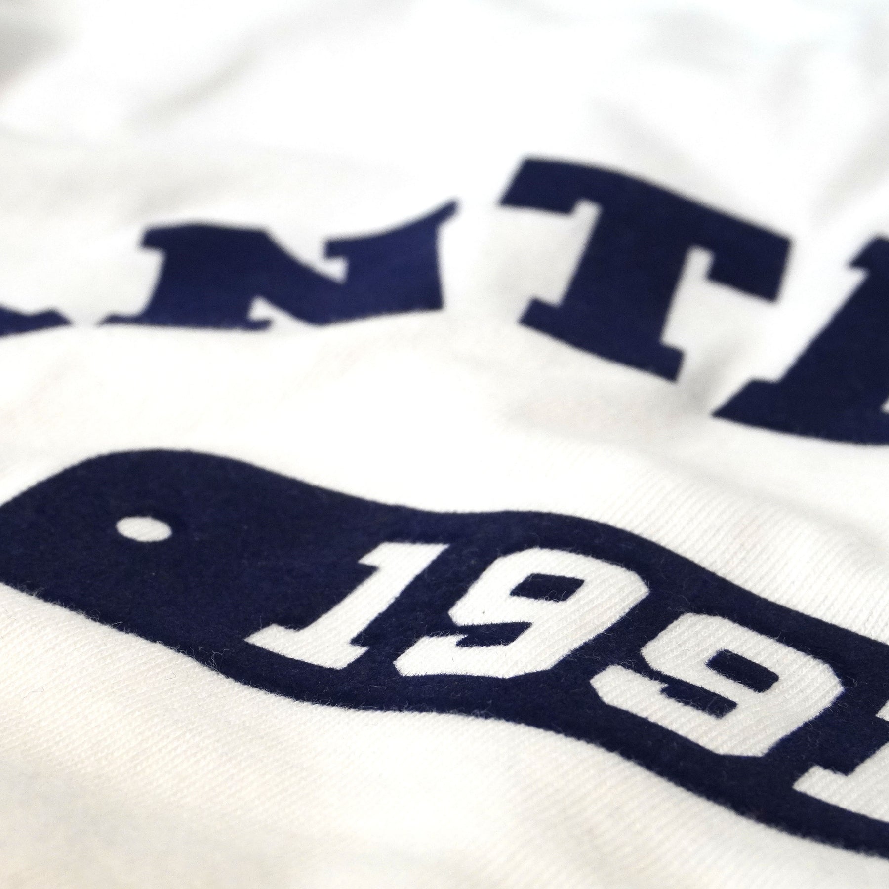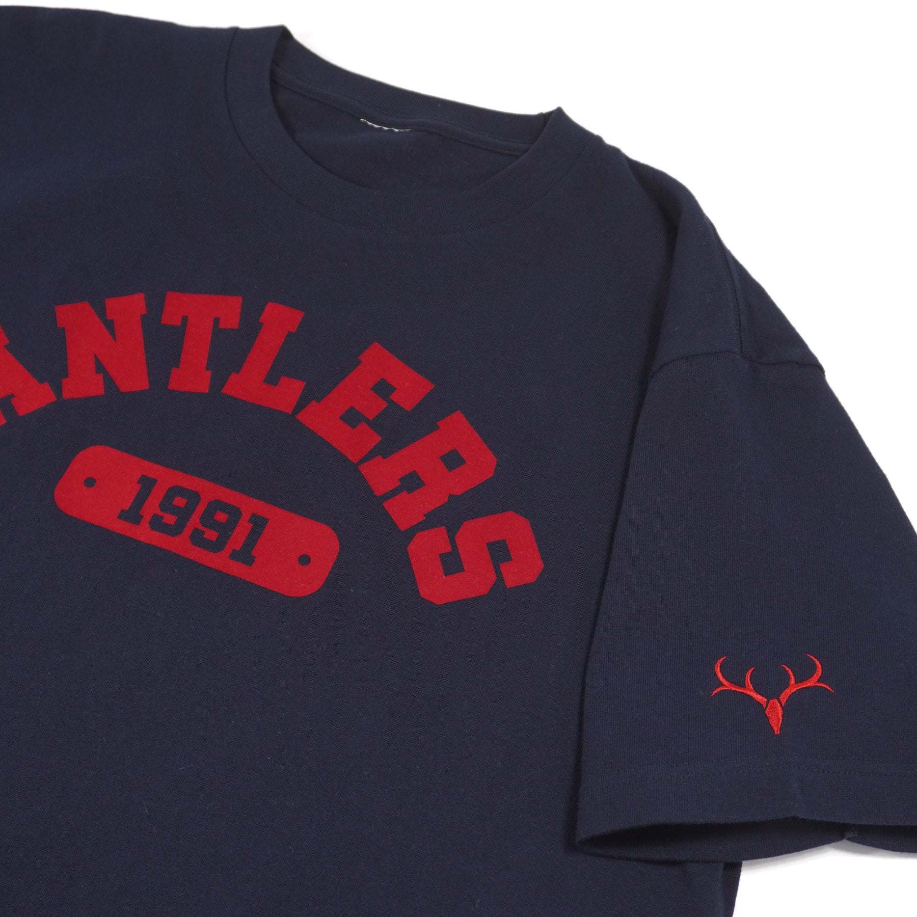 ベルベットのような上質な起毛感が際立つ、フロッキー加工のカレッジロゴTシャツ。通常のプリントとは一線を画す、マットで立体的な質感がスタイルに深みを加えます。左袖に施されたエンブレム刺繍でクラブへの誇りを表現。日常使いからスタジアム観戦まで、どんなシーンにも馴染むプレミアムな一枚です。