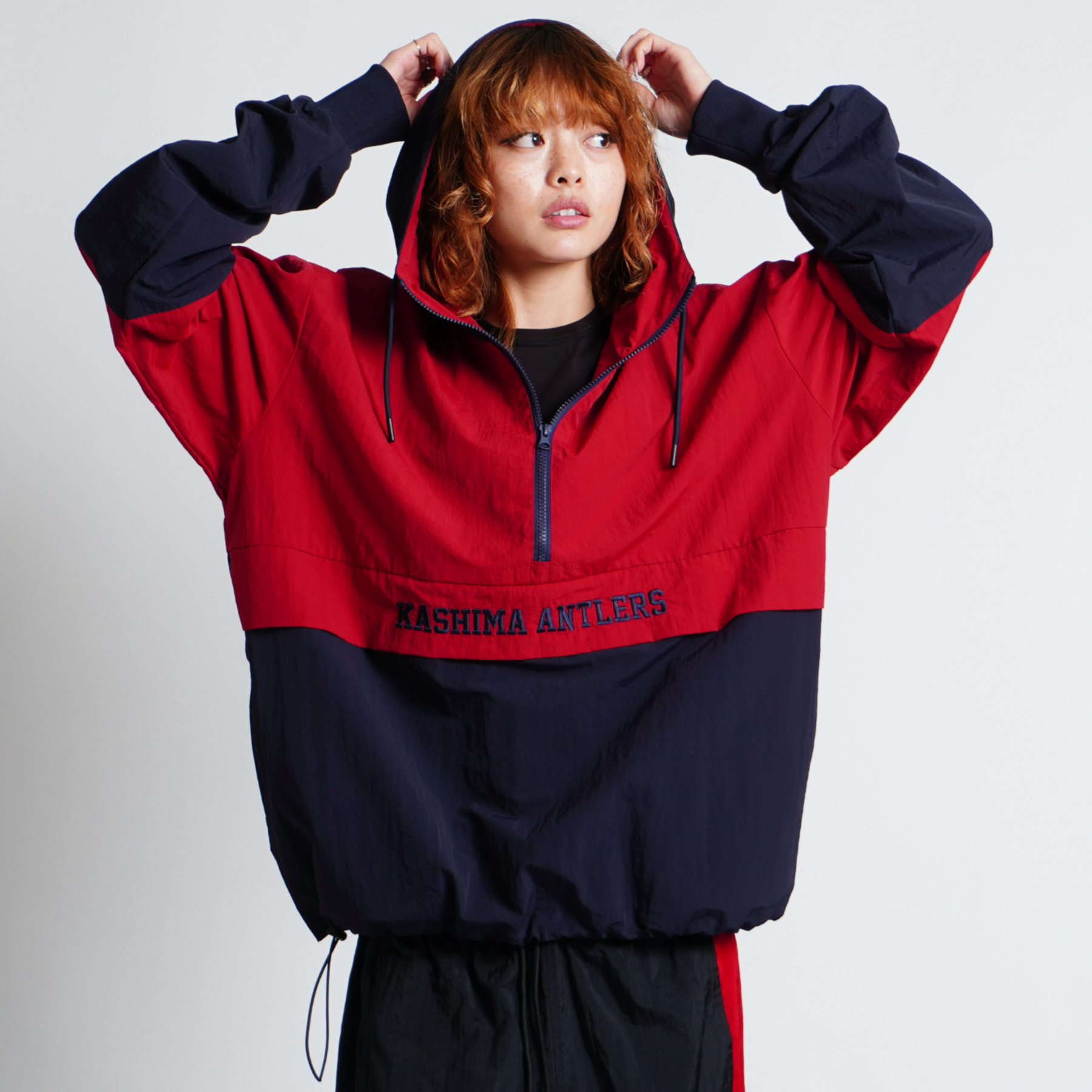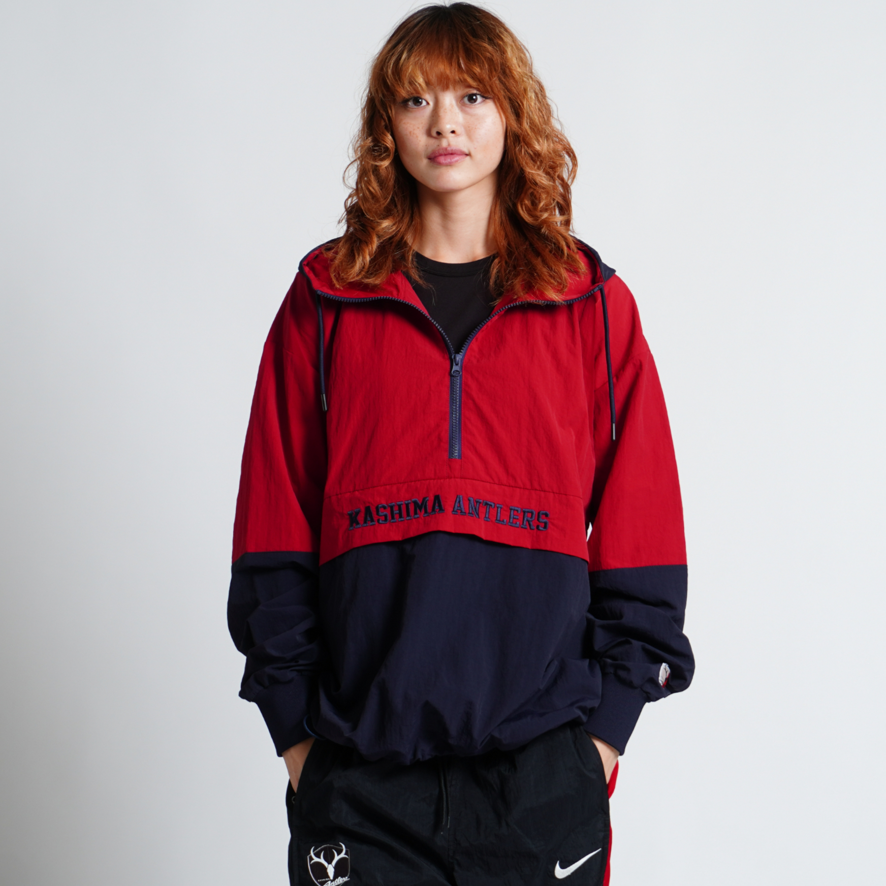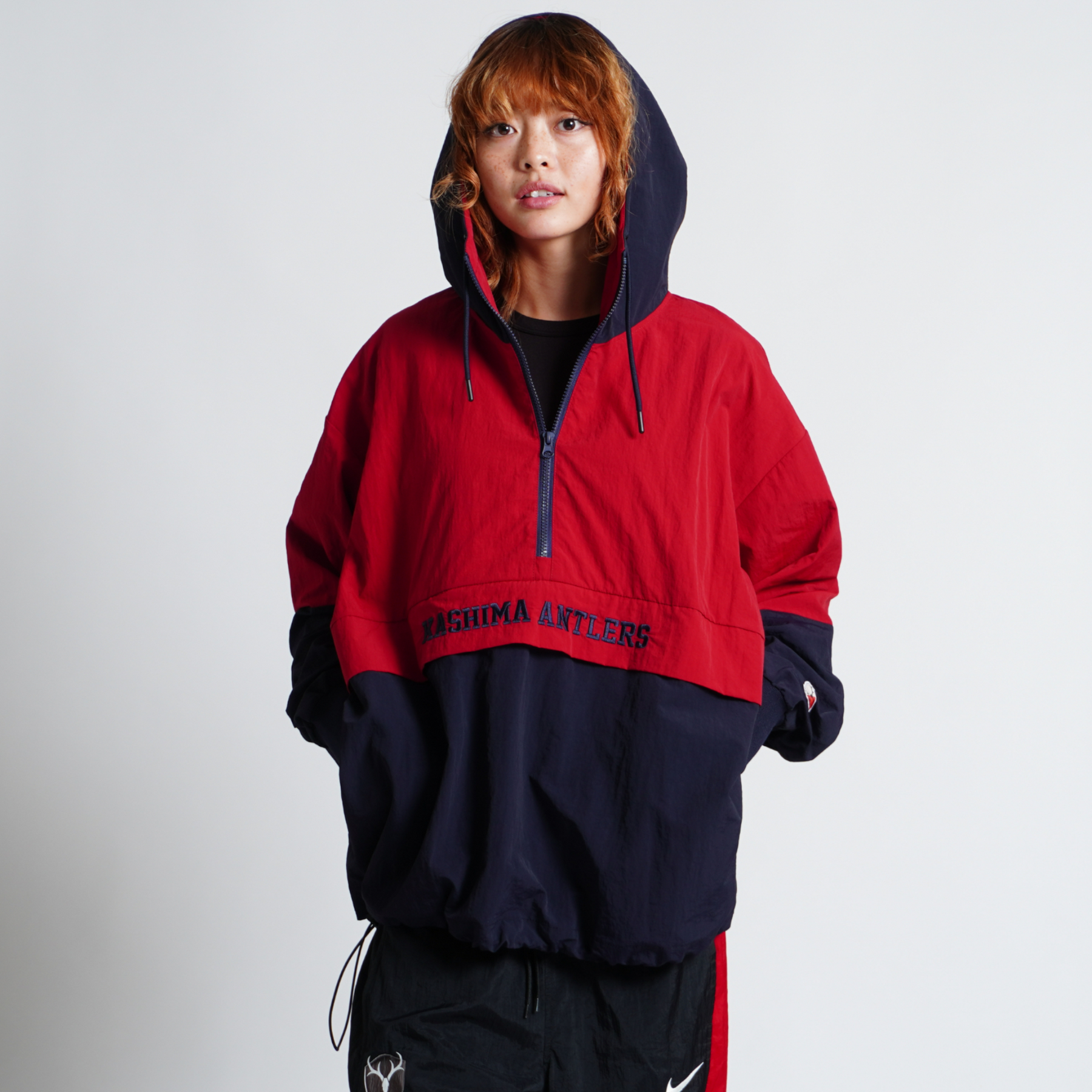 センターには「KASHIMA ANTLERS」の文字を配し、クラブへの誇りを胸に刻むような存在感。スポーティーでありながらストリートにも馴染む一着は日常のコーディネートにも活躍します。