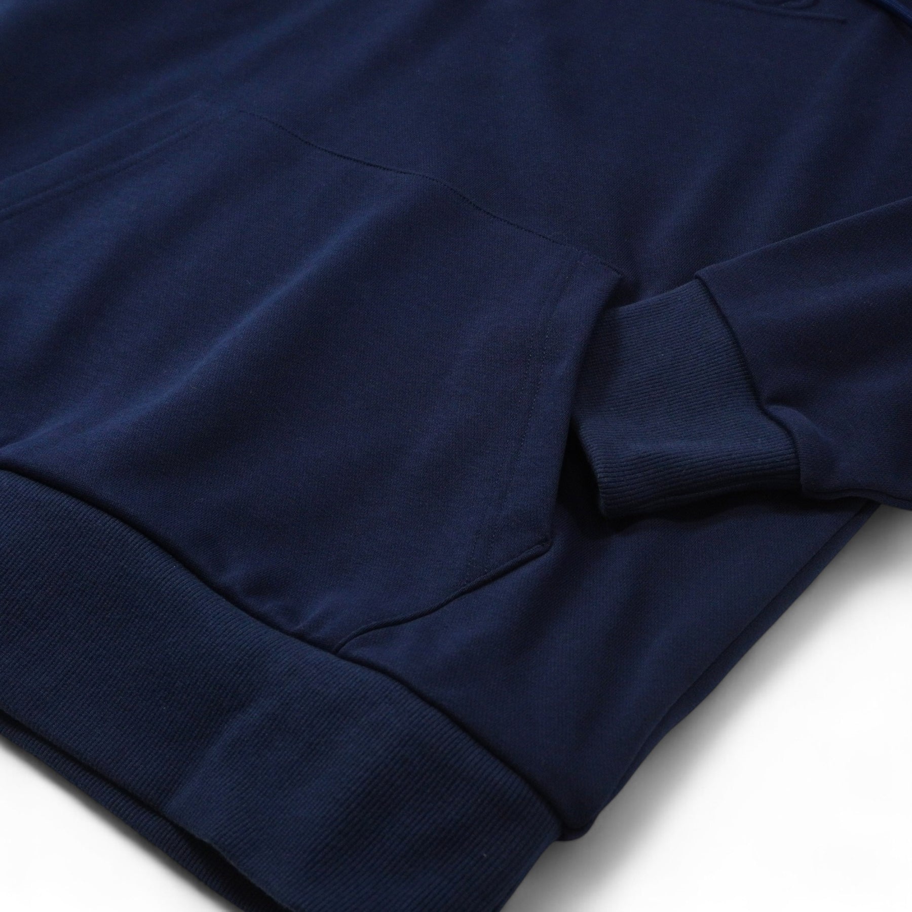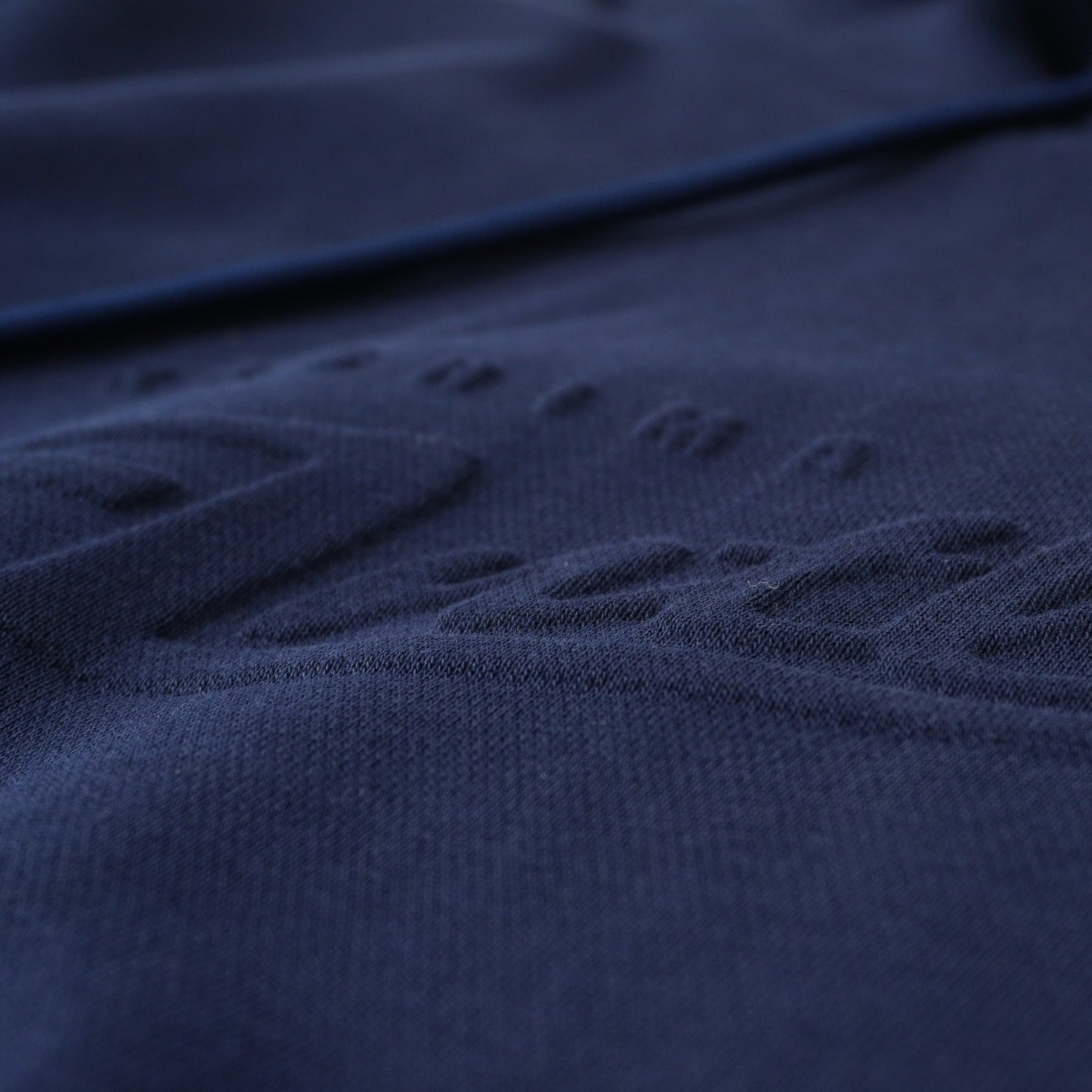 エンボス加工のロゴがデザインされたフーディーが登場。ベーシックなシルエットとシンプルなデザインを兼ね備えています。幅広い層に支持されるアイテムです。