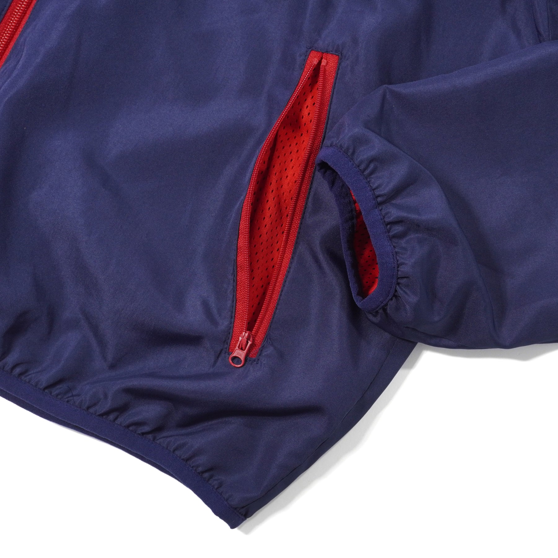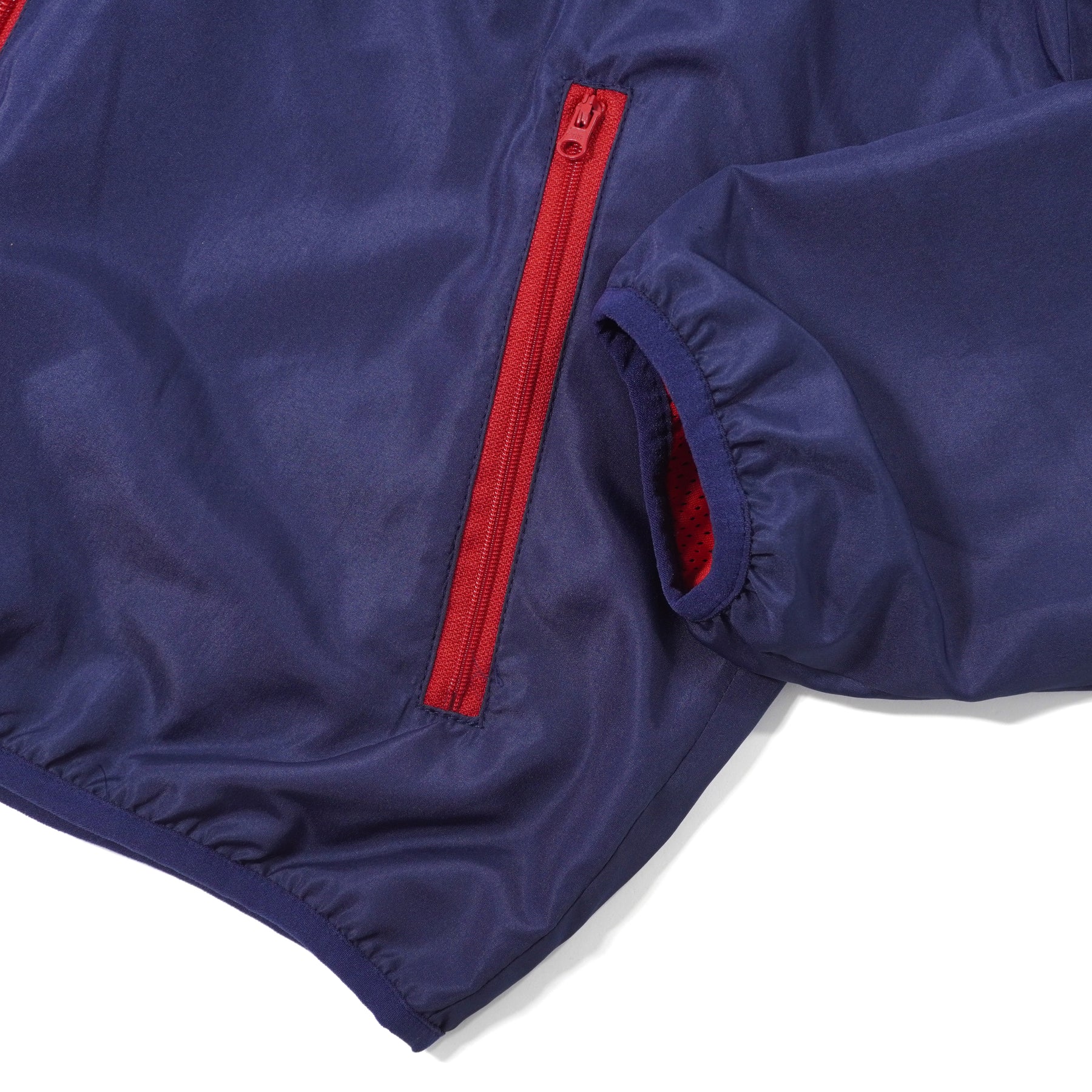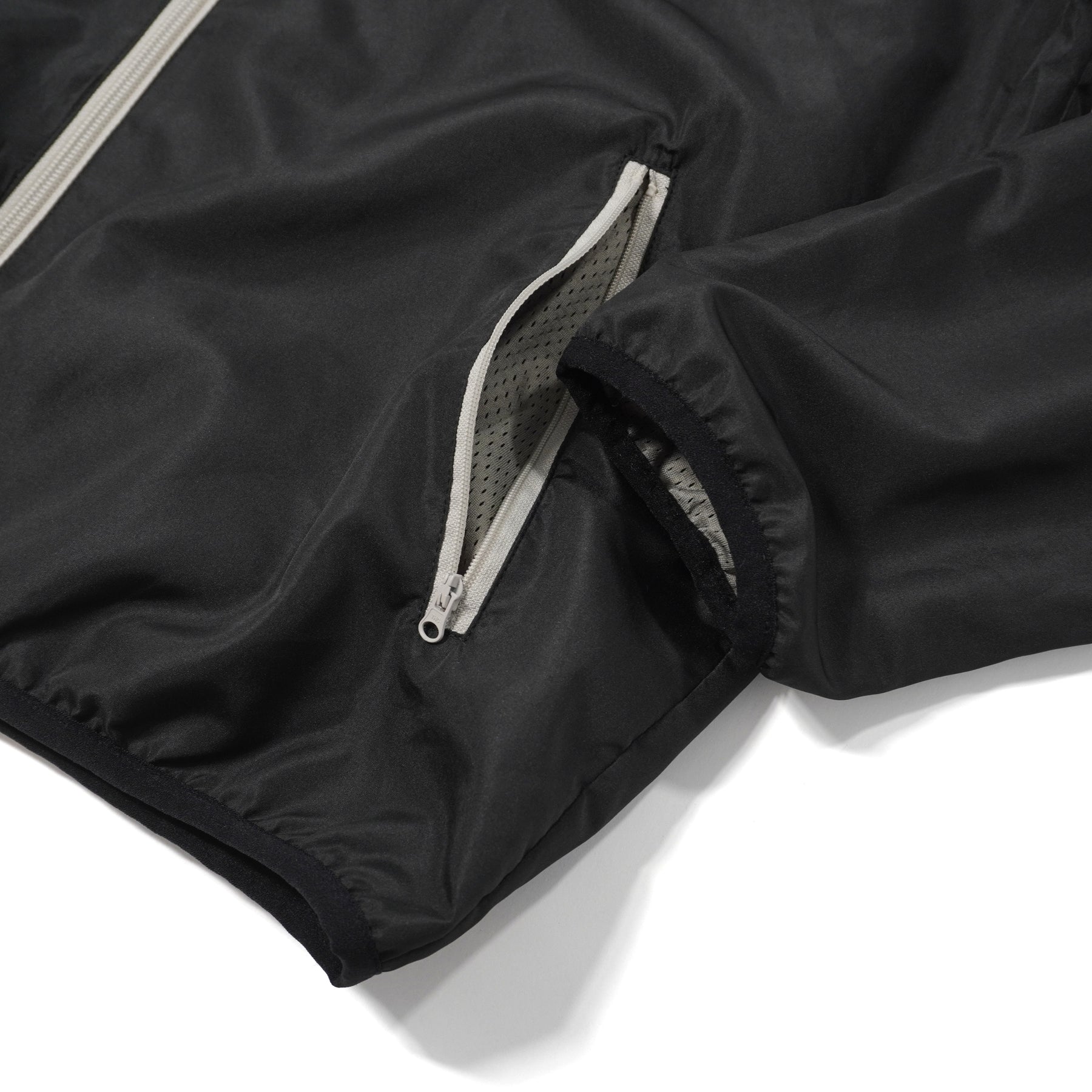 ウィンドブレーカーらしい軽いシャカっとした質感はありつつ、過度に硬さや音が出にくく、日常使いにも取り入れやすいバランス。裏地にはメッシュを採用し、さらっとした肌あたりで快適に着用できます。