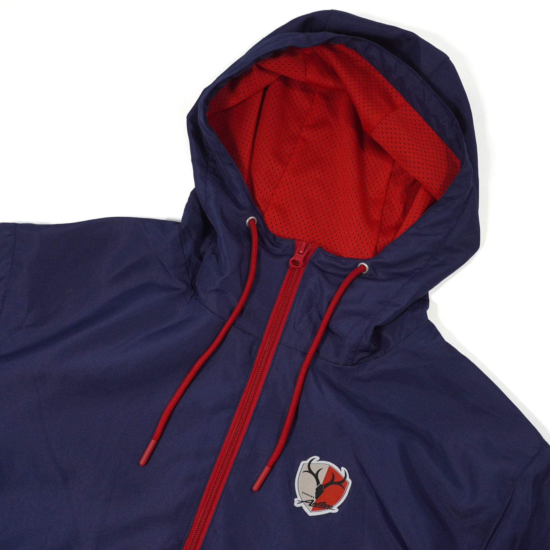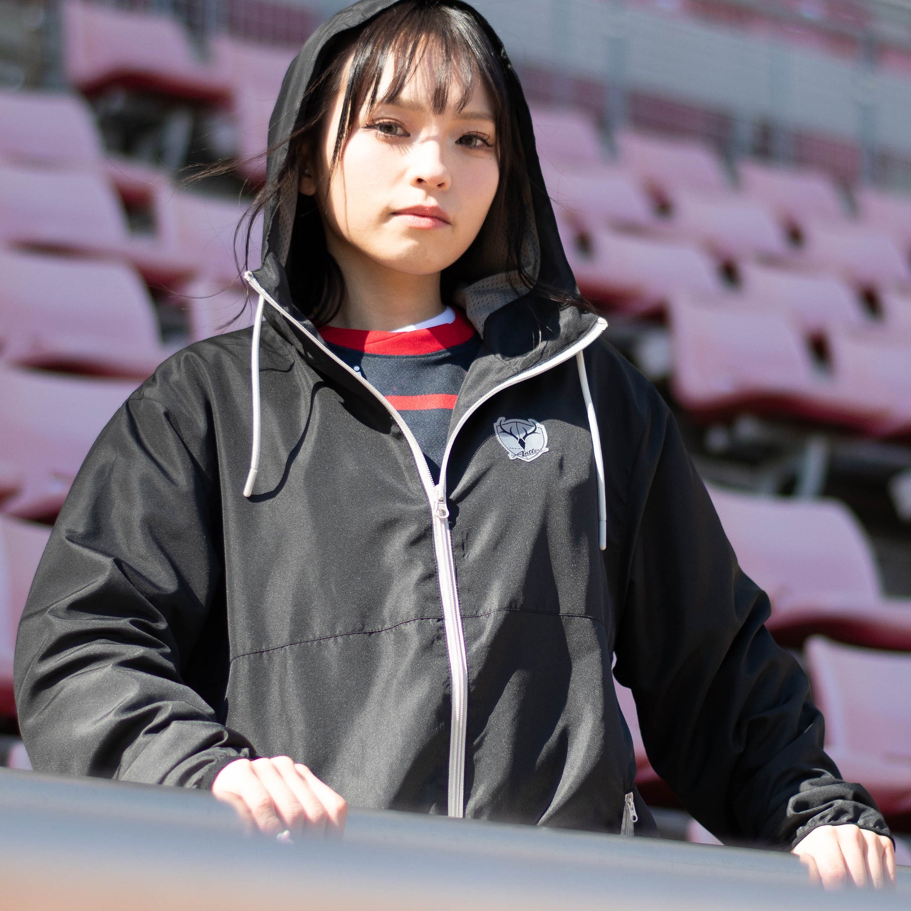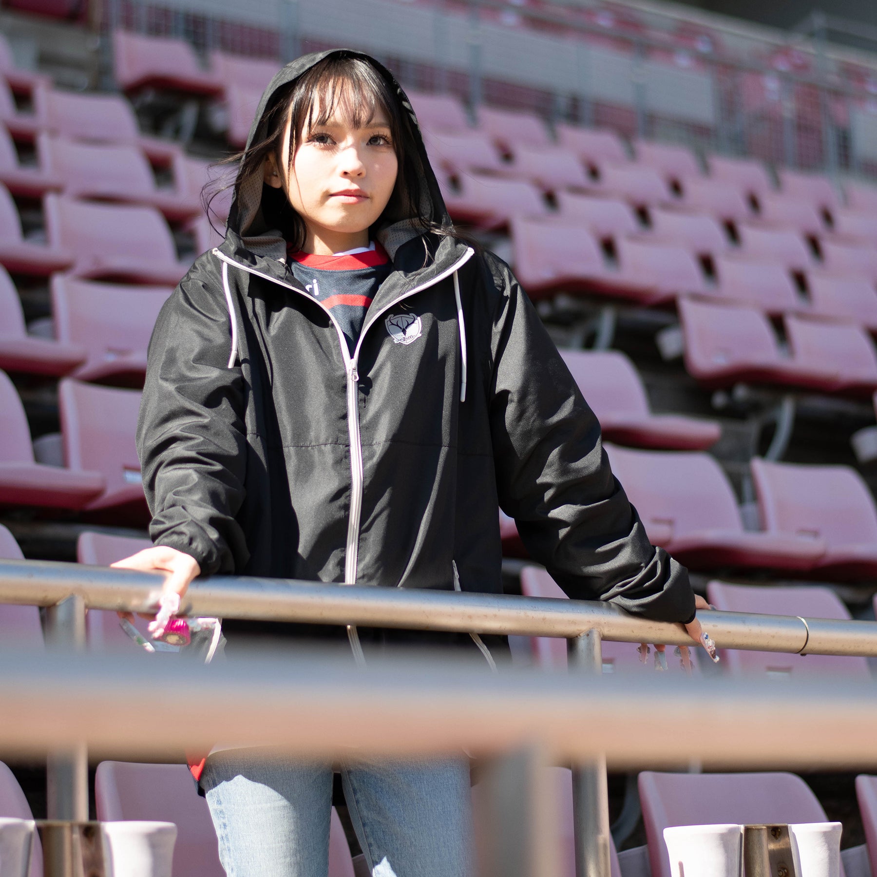 生地が柔らかいため、脱いだあとも小さくまとめてバッグに入れやすく、持ち運びにも便利。胸元には鹿島アントラーズのエンブレムを配し、シンプルな中にクラブらしさをしっかり感じられる一着です。