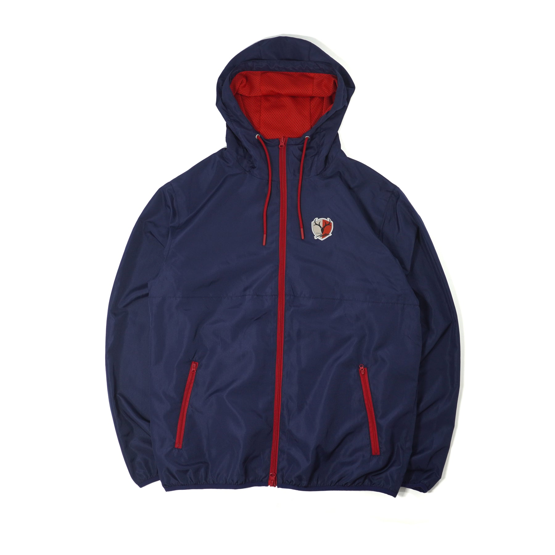 やわらかな風合いで着心地よく仕上げた、フード付きのウィンドブレーカーです。