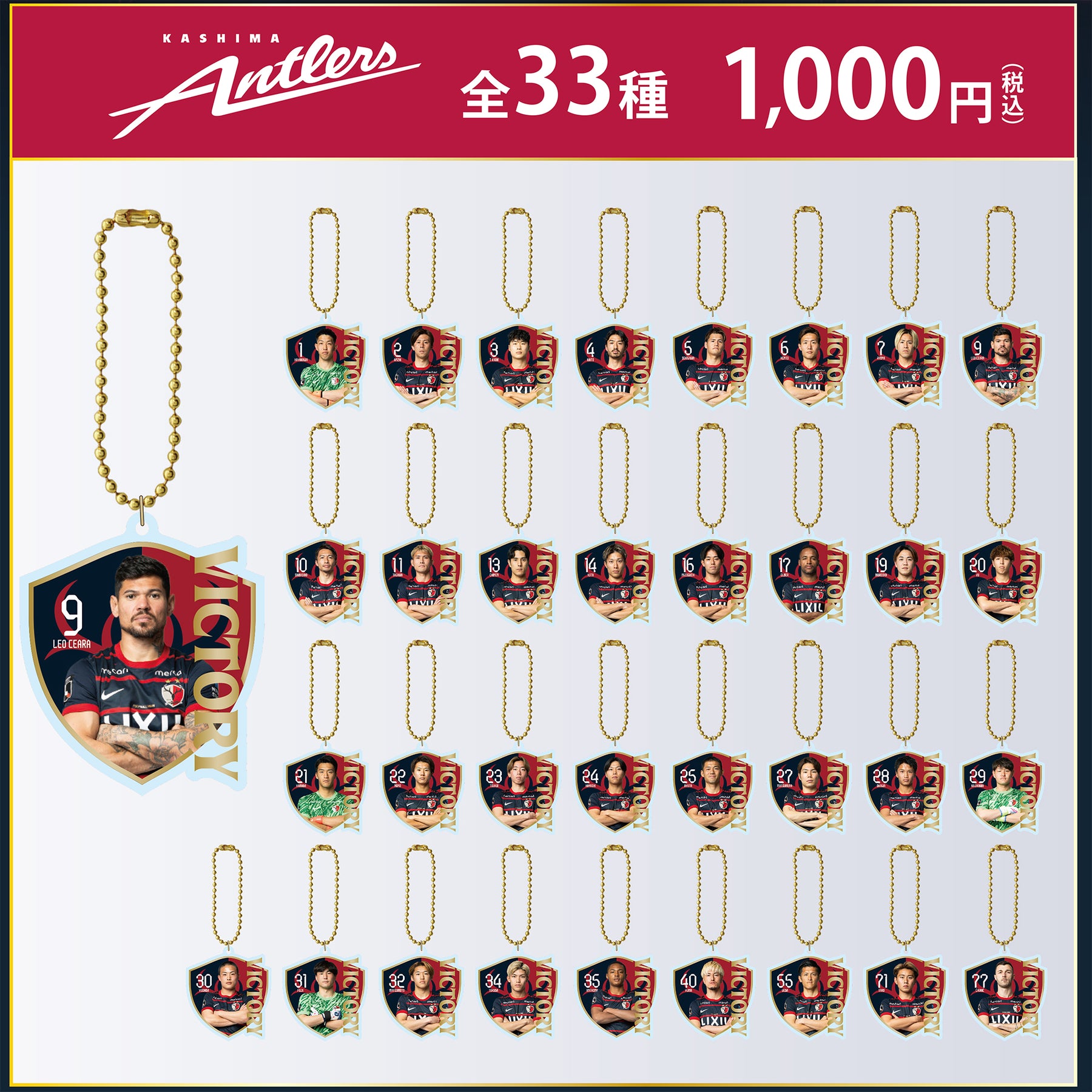 勝利時のみ発売する勝利時限定箔押しキーホルダー(全33種)です。