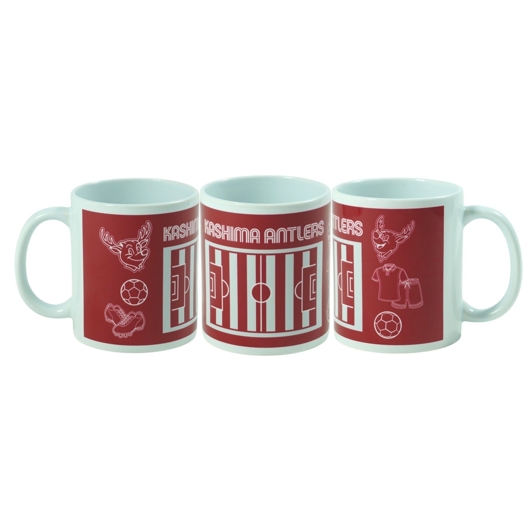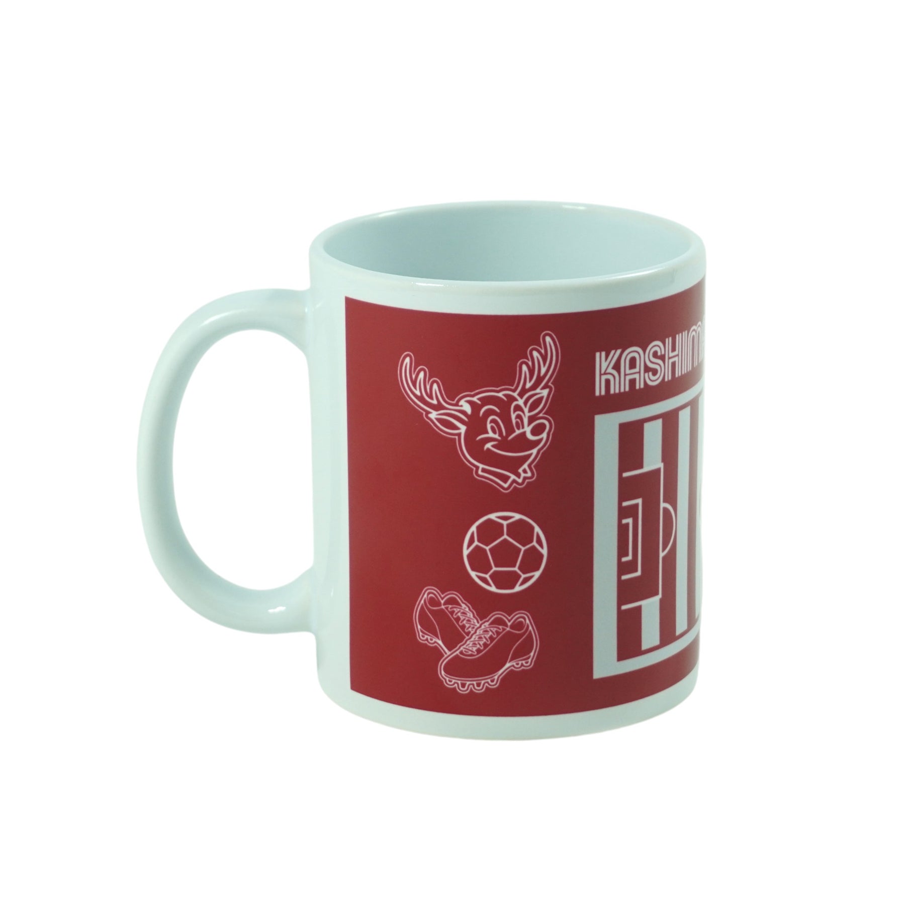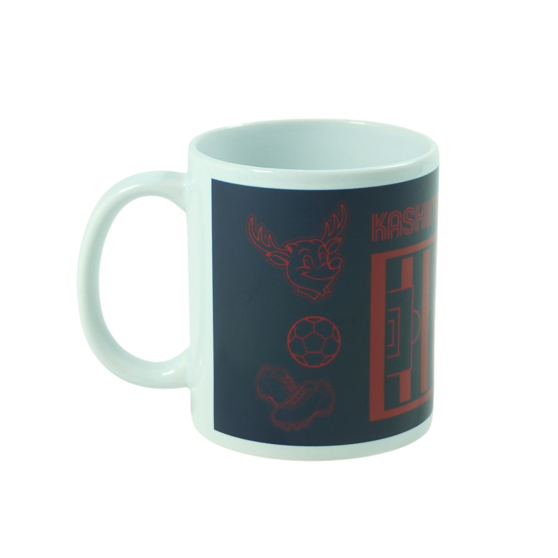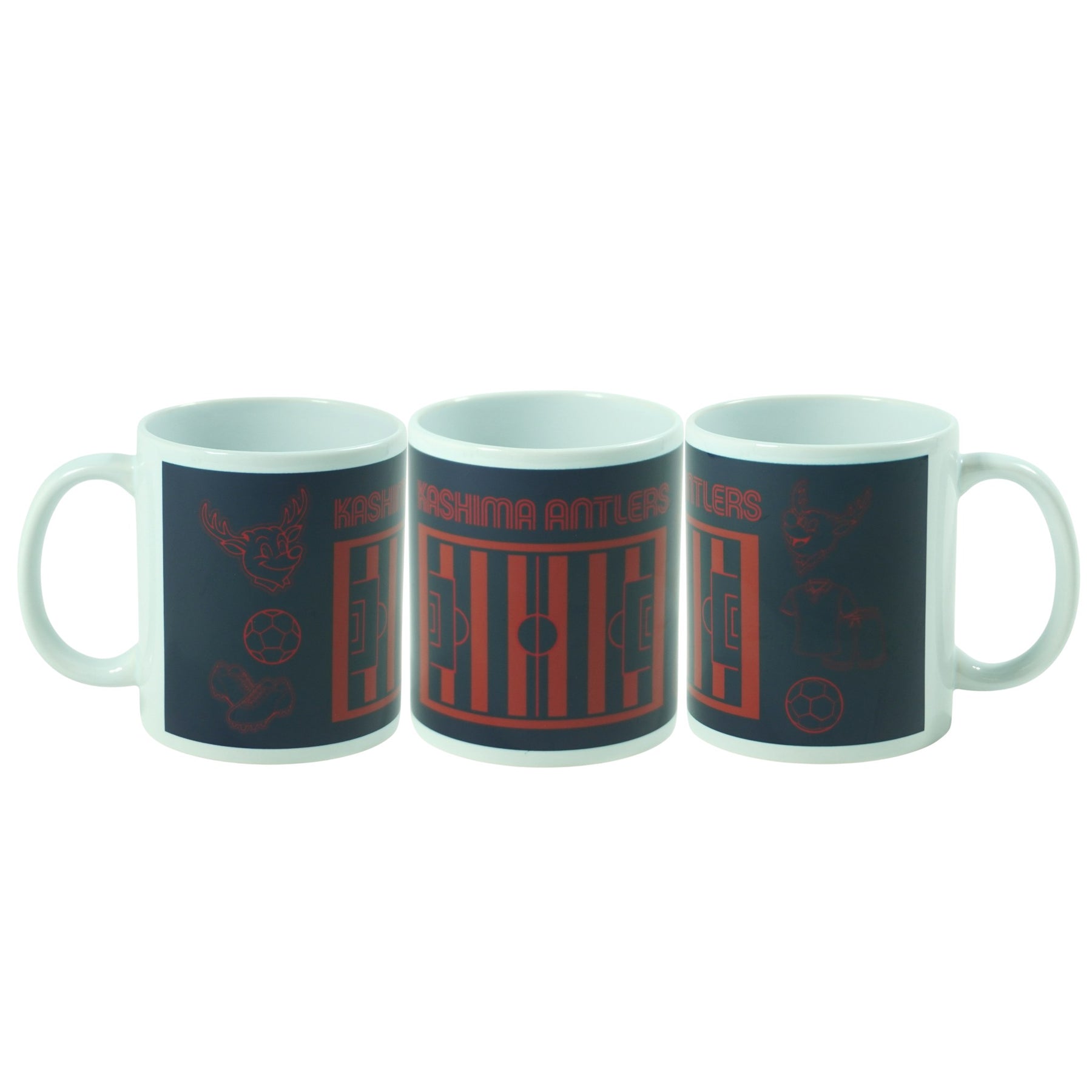 ピッチとしかお、サッカーボールなどが描かれたマグカップです。