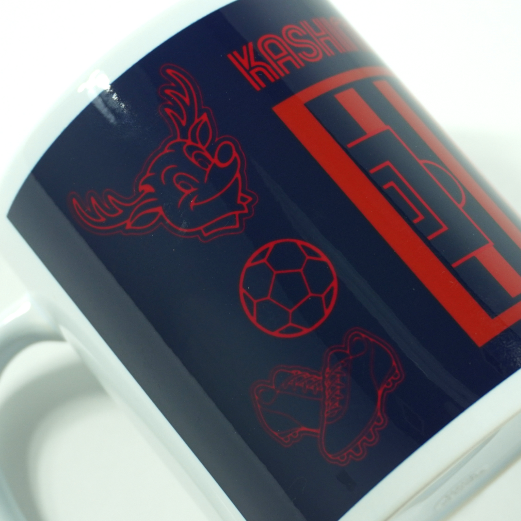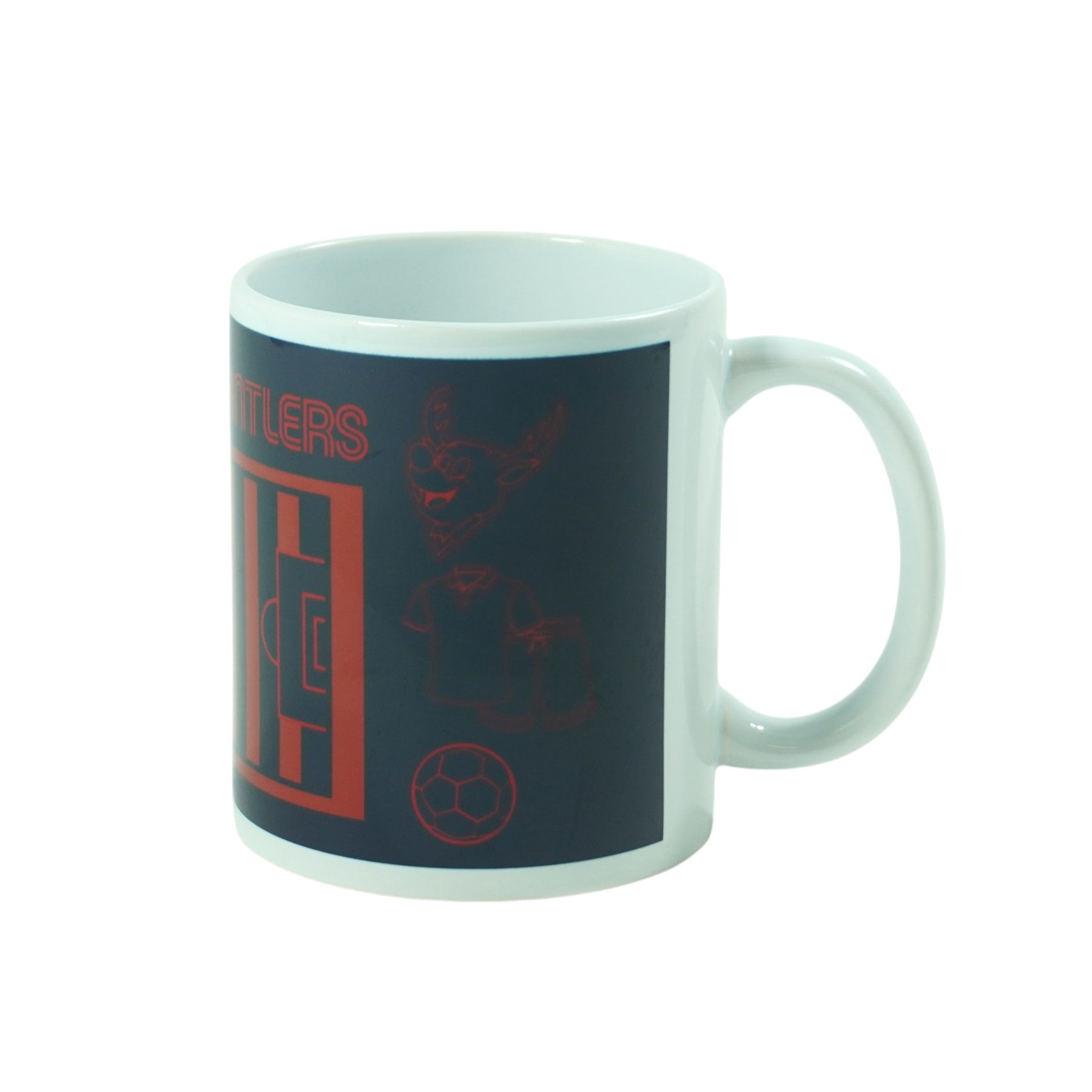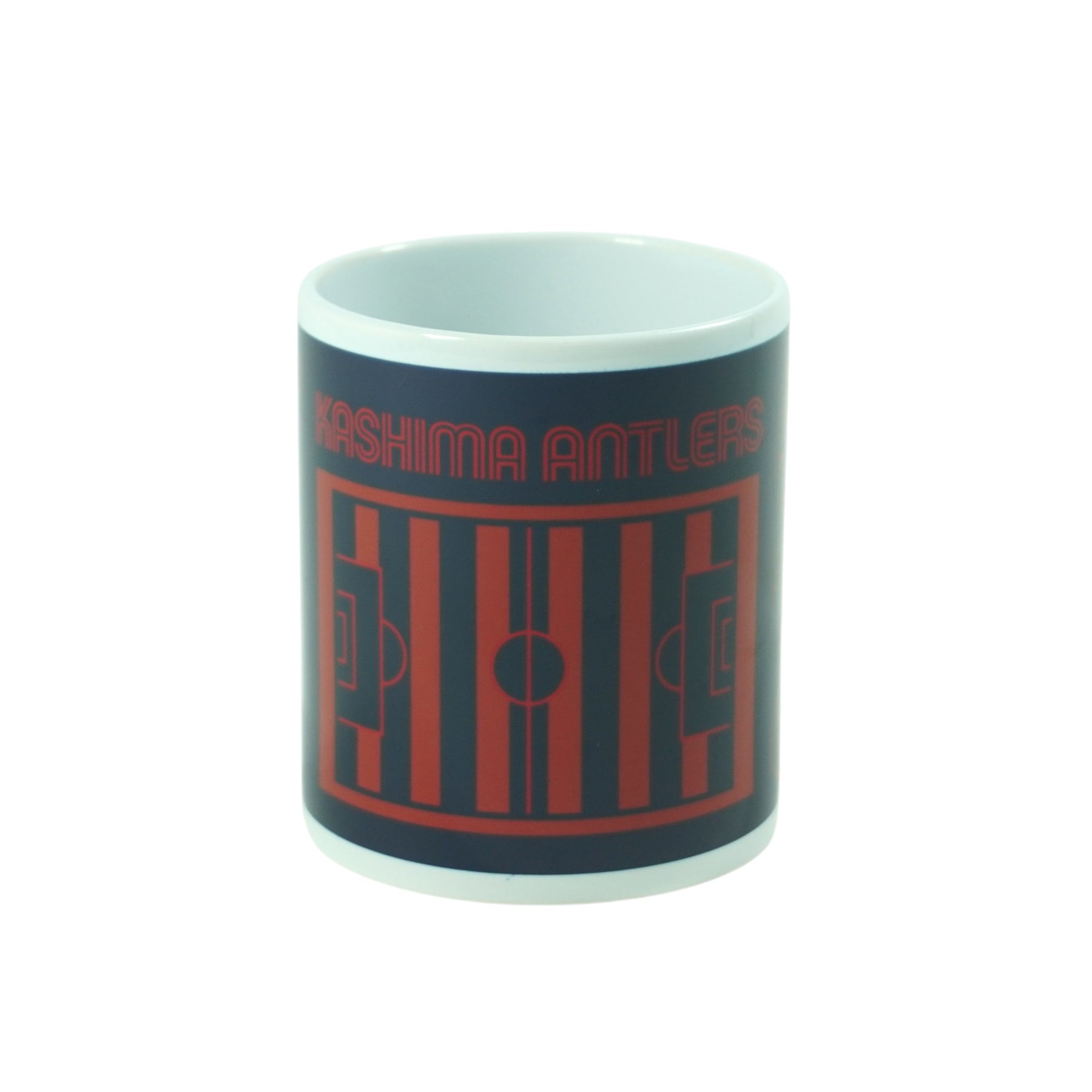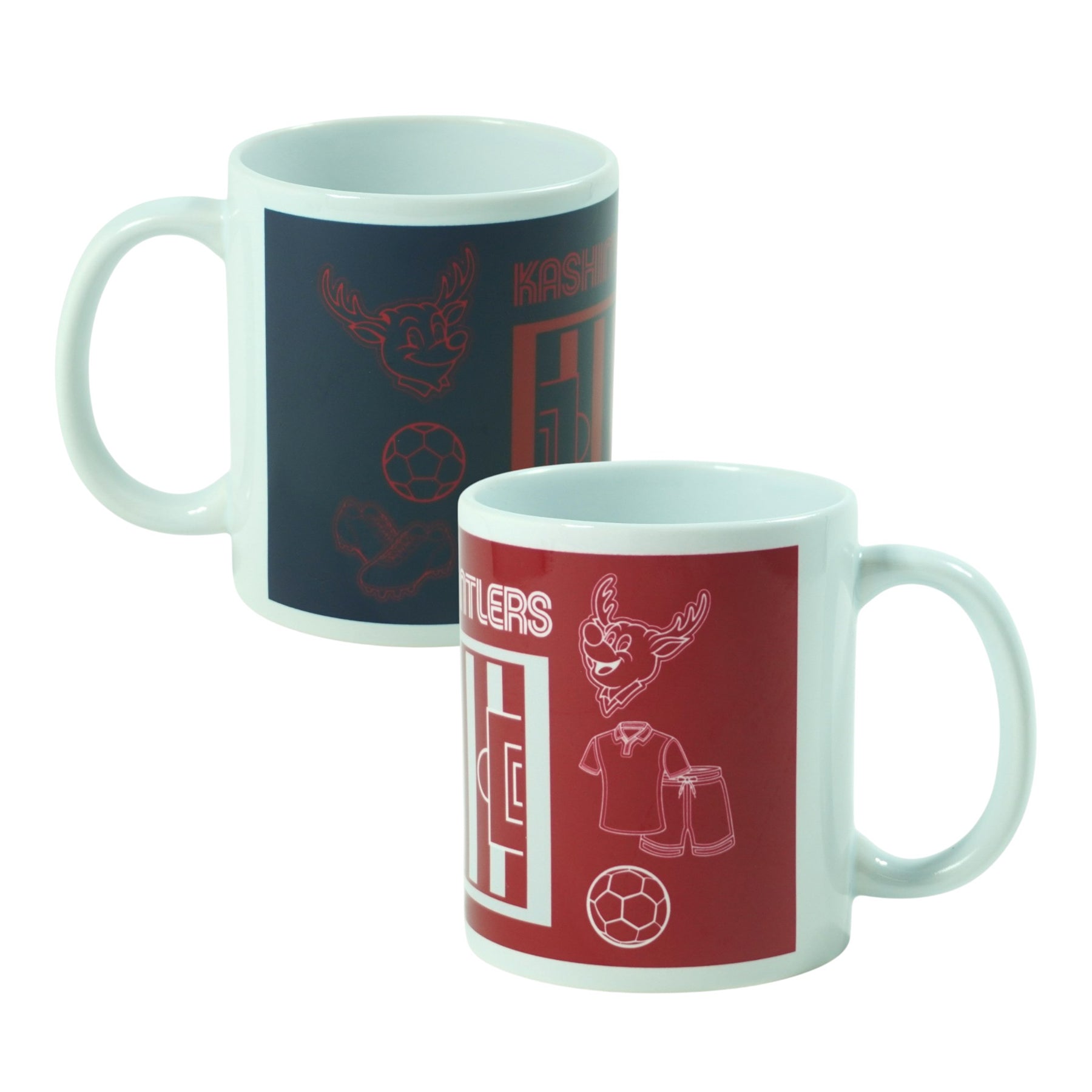 ピッチとしかお、サッカーボールなどが描かれたマグカップです。