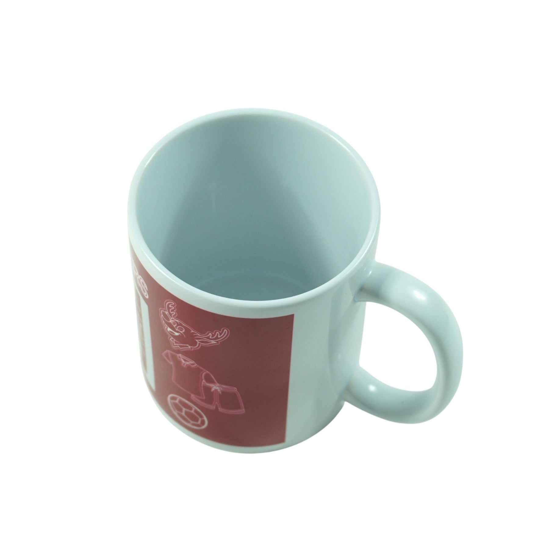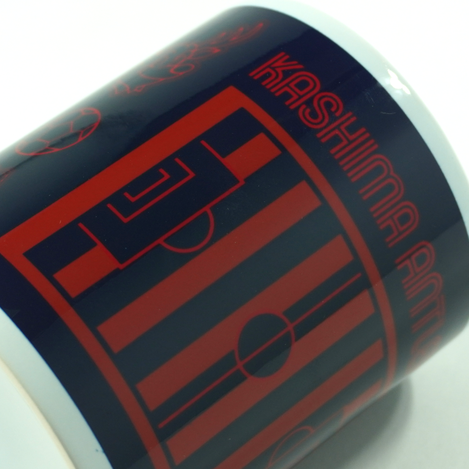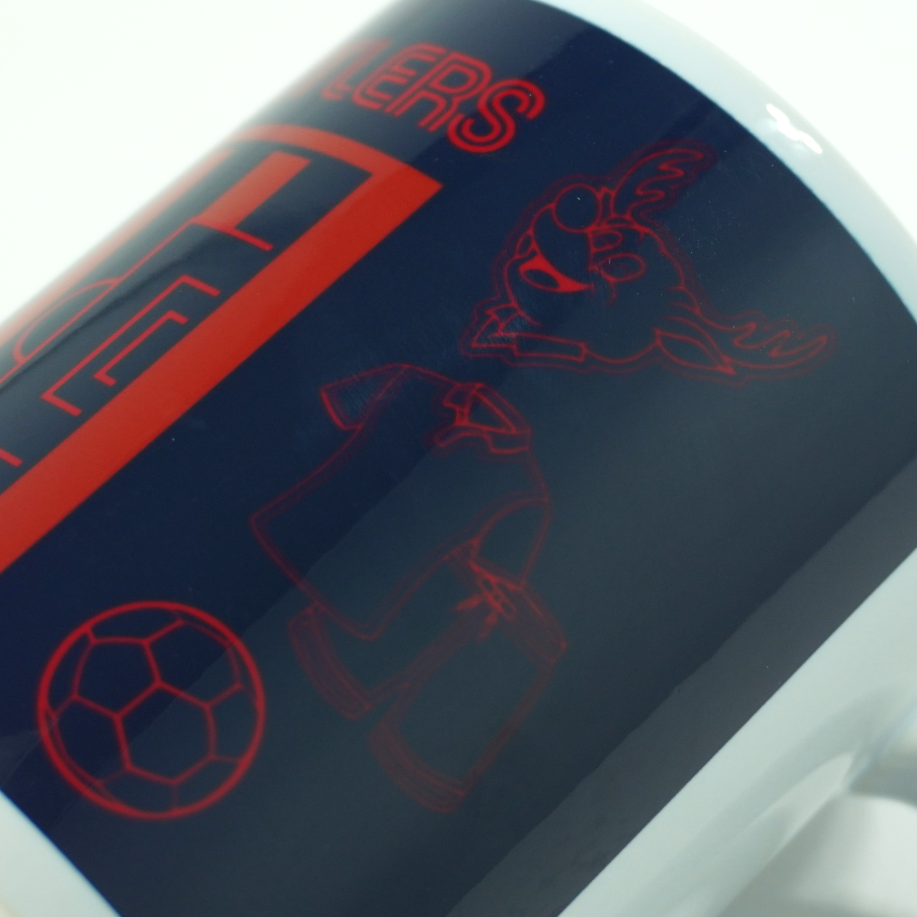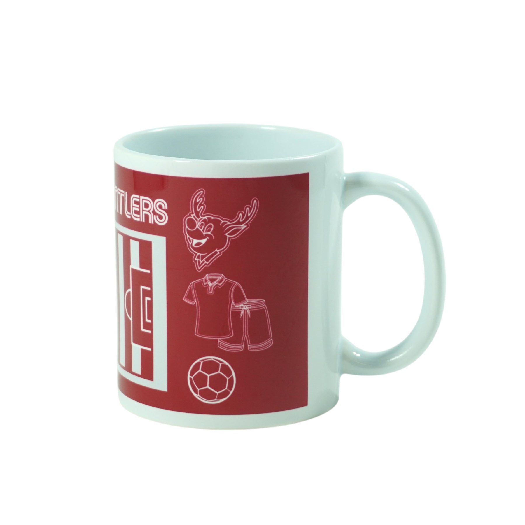 ピッチとしかお、サッカーボールなどが描かれたマグカップです。