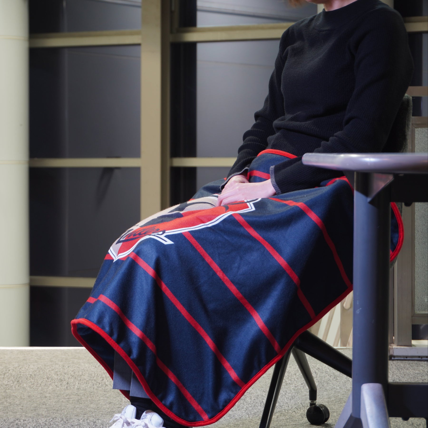サイズはひざ掛けにちょうどいい設定。大きすぎず、扱いやすいので、使う場所を選びません。丸めて持ち運びやすく、バッグに入れておけば急な冷え込みにも対応可能。シーズンを通して出番が多い、サポーターの生活導線に自然に入り込むアイテムです。